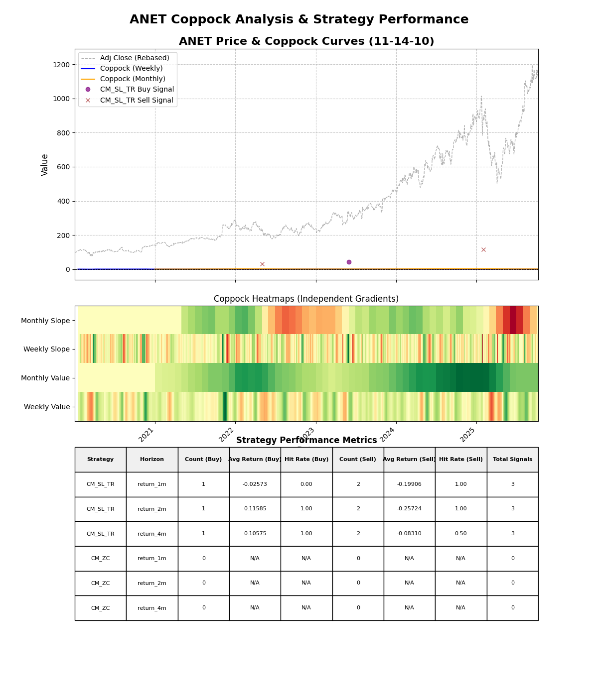 Comprehensive analysis of Coppock-based technical signals, including: (1) multi-timeframe Coppock strategy design, (2) security-level Coppock scores using voting logic, (3) performance comparison across multiple Coppock variants, and (4) risk/return profiling of the final strategy.